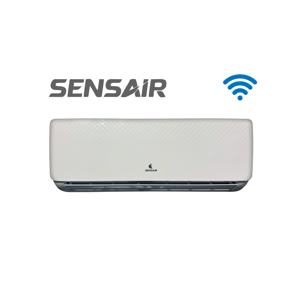 Sensair inverter air conditioner with A++ cooling, A+++ heating, R32 refrigerant, Wi-Fi, and air quality features.
